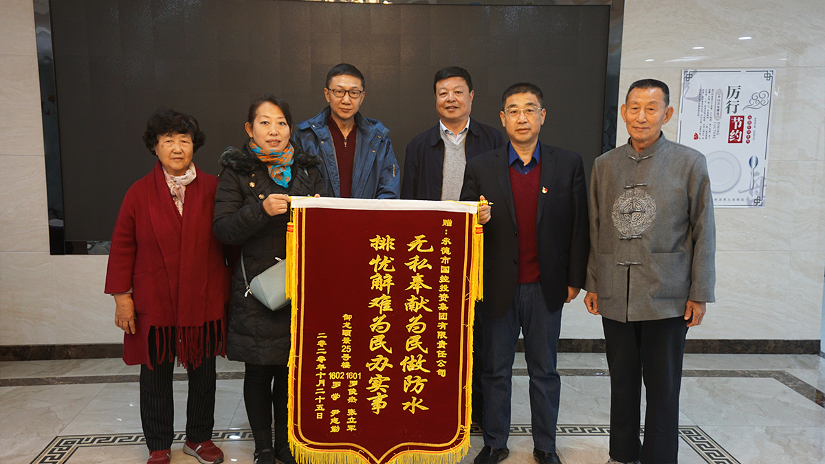 10月28日上午,市區(qū)御龍頤景小區(qū)的四位居民將一面繡有“無私奉獻(xiàn)為民做防水,排憂解難為民辦實事”的錦旗送到集團(tuán)公司,表達(dá)了對集團(tuán)公司出資解決御龍御景小區(qū)房屋漏水問題的感謝之情。