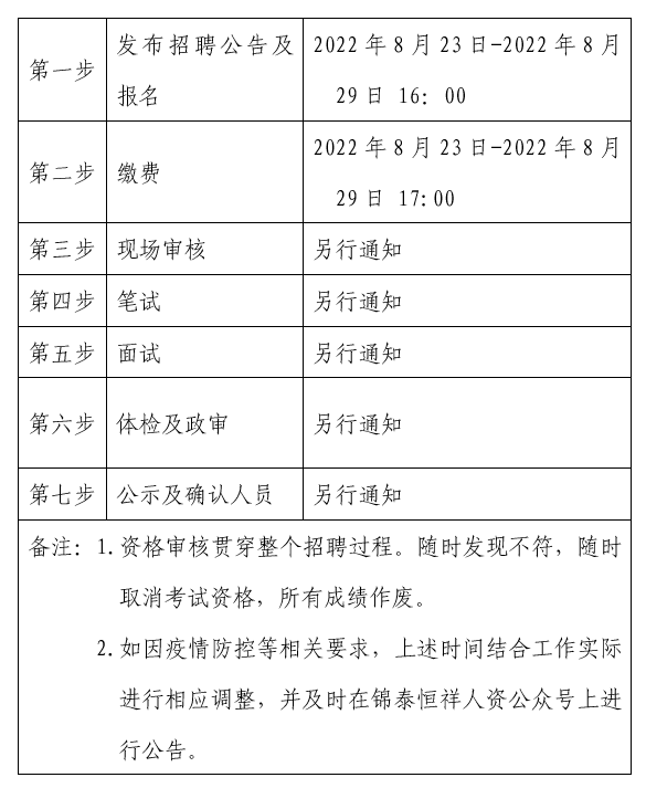 ?2022年8月23日-2022年8月29日 16:00在錦泰恒祥人資官網(wǎng)(www.jthxhr.com)、“錦泰恒祥人資”微信公眾號(hào)、“國(guó)控集團(tuán)”官方網(wǎng)站(m.983484.com)及上級(jí)部門要求的相關(guān)網(wǎng)站等發(fā)布招聘公告。