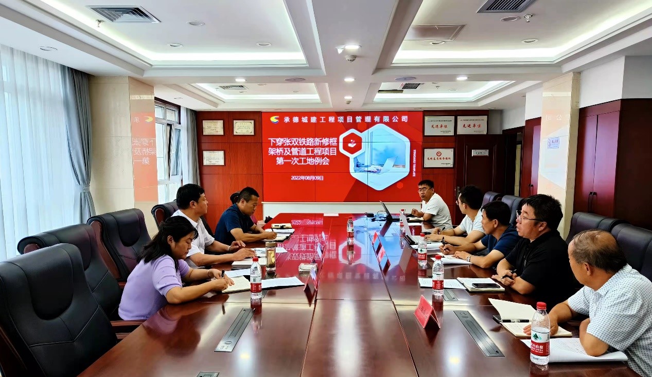 2022年8月9日上午,承德市國瑞置業(yè)有限公司在國控大廈十二層第一會議室組織召開下穿張雙鐵路新修框架橋及管道工程項(xiàng)目第一次例會。市國控集團(tuán)總經(jīng)理徐俊儒、國瑞置業(yè)公司董事長胡杰出席會議。